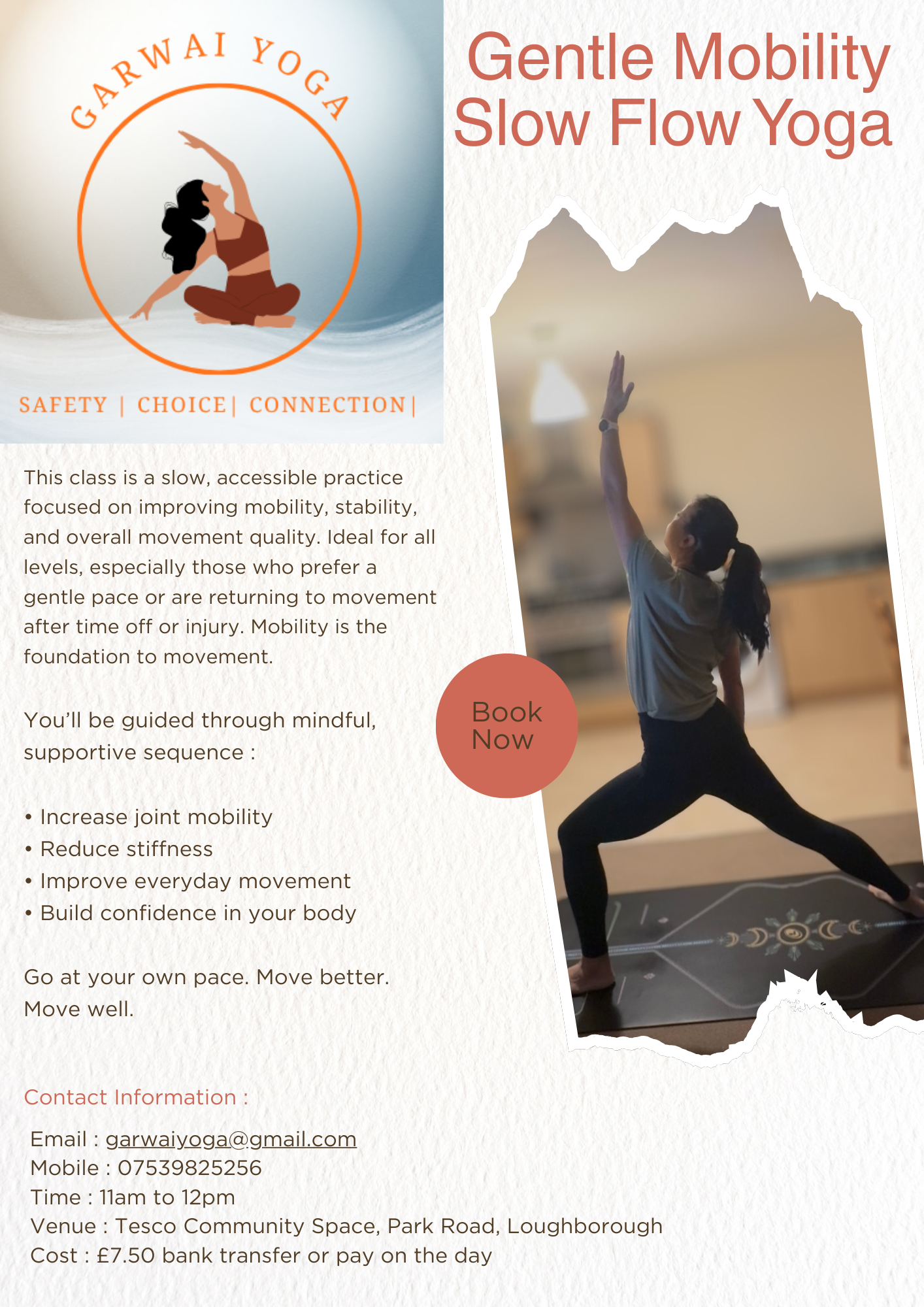 My name is Gail a yoga teacher based in Loughborough, specialising in gentle mobility based classes and chair-based yoga taught through a trauma-informed approach. I found a way back to myself one breath, one kind movement at a time.